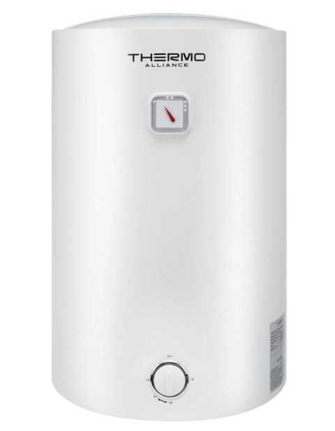Водонагреватель Thermo Alliance 50 л, мокрый ТЭН 1,5 кВт D50VH15Q2 предназначен для подогрева воды для хозяйственно-бытовых нужд. От коррозии внутреннюю поверхность бака защищает эмалевое покрытие и магниевый анод. Теплоизоляция из пенополиуретана эффективно сохраняет температуру нагретой воды. Нагревательный элемент работает надежно. Индикатор температуры находится в верхней части корпуса, в нижней – ручка управления для регулировки нагрева и отключения бойлера («Off»). Толщина внутреннего бака – 2 мм.
