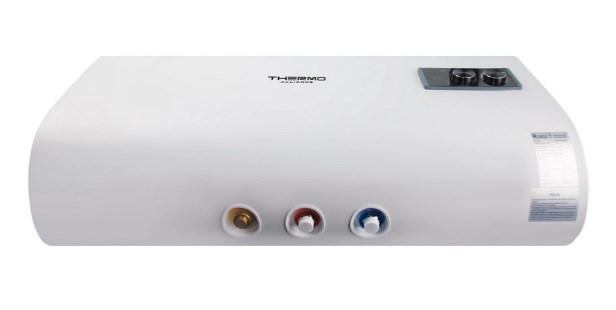 При необходимости разместить бойлер в горизонтальной нише или в шкафу выбором может стать плоский водонагреватель Thermo Alliance 30 л, мокрый ТЭН 2 кВт (0,8+1,2) DT30H20GPD. Патрубки подключения воды находятся внизу. Устанавливать такой нагревательный прибор следует горизонтально. В инструкции приведены монтажная схема и рекомендации по эксплуатации изделия. Стальной бак внутри защищен от коррозии эмалевым покрытием и магниевыми анодами. Толщина внутреннего бака – 2 мм.