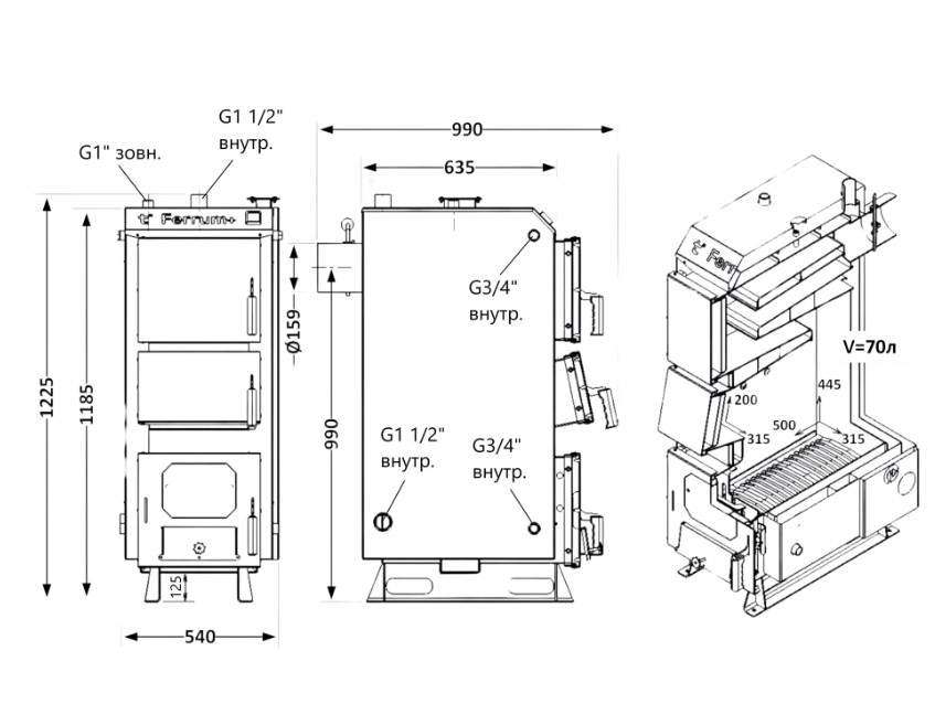 | Виды твердого топлива | дрова, брикеты, уголь |