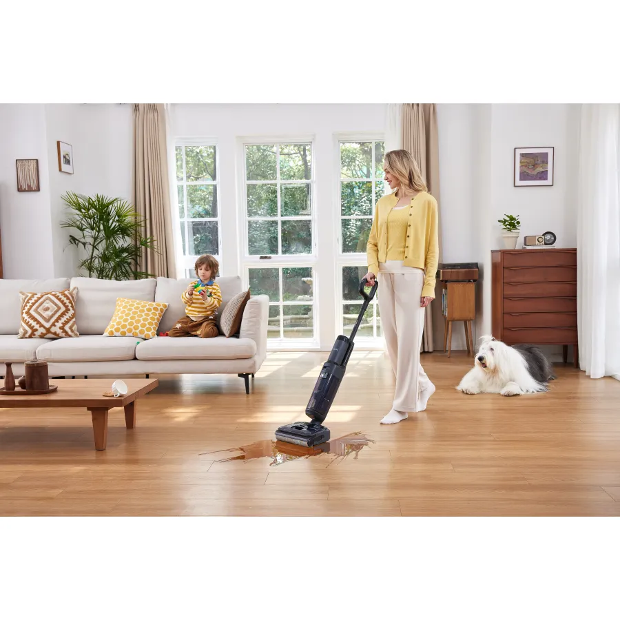 Модель работает по принципу 2-в-1: одновременно собирает грязь и моет пол, что значительно сокращает время уборки. Интеллектуальная система автоматически определяет уровень загрязнения и подстраивает подачу воды и мощности, обеспечивая равномерный результат без разводов. При этом конструкция щетки адаптирована для работы вдоль плинтусов и в углах, чтобы не покидать непроработанные зоны.