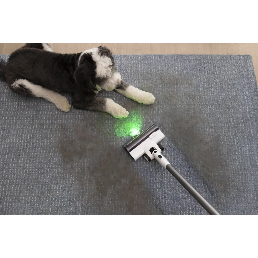 Пылесос самостоятельно адаптируется к уровню загрязнения благодаря умным сенсорам, которые в реальном времени анализируют поверхность и регулируют мощность. Это позволяет добиваться стабильно высокого результата без необходимости вручную переключать режимы. Отдельное внимание уделено удобству: конструкция щетки предотвращает намотки волос, а подсветка помогает замечать пыль даже в темных зонах.