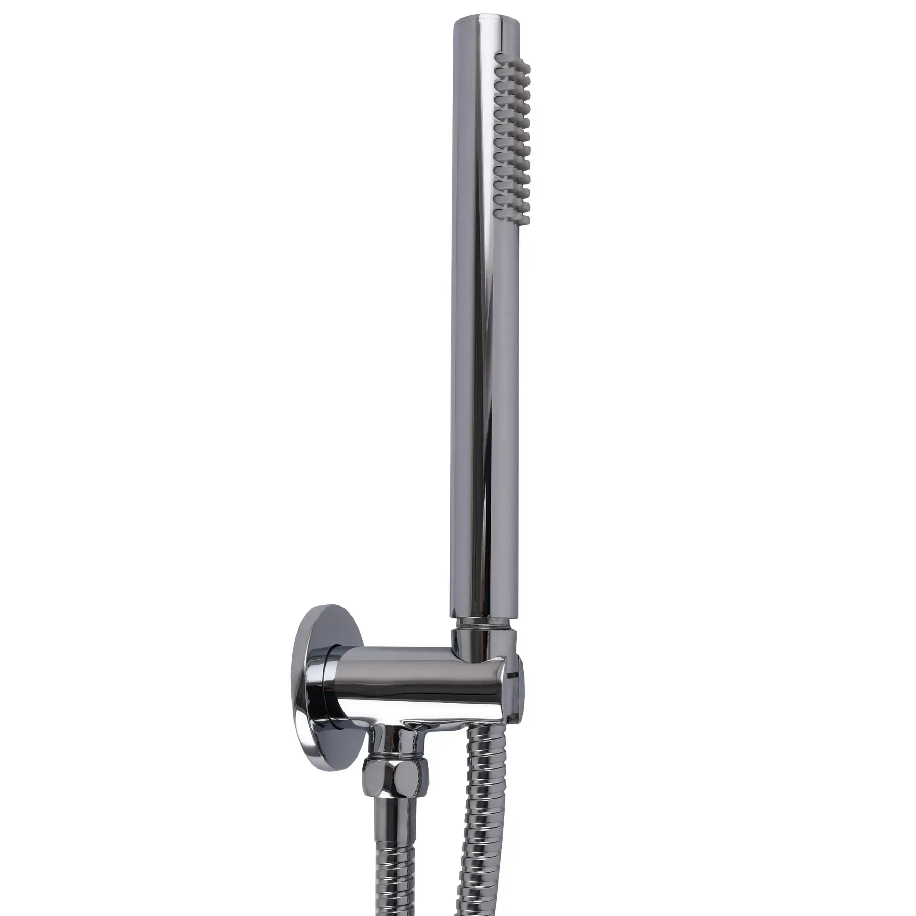 Душевая система включает в себя верхний (тропический) душ большого диаметра, который создает приятный, широкодействующий водяной поток. Это обеспечивает равномерное ополаскивание тела и комфорт при принятии душа. Комплект также содержит ручной душ с гибким шлангом, что позволяет направлять струю воды в нужное место — удобно при мытье тела, душевых стенок или для мытья детей и животных.
