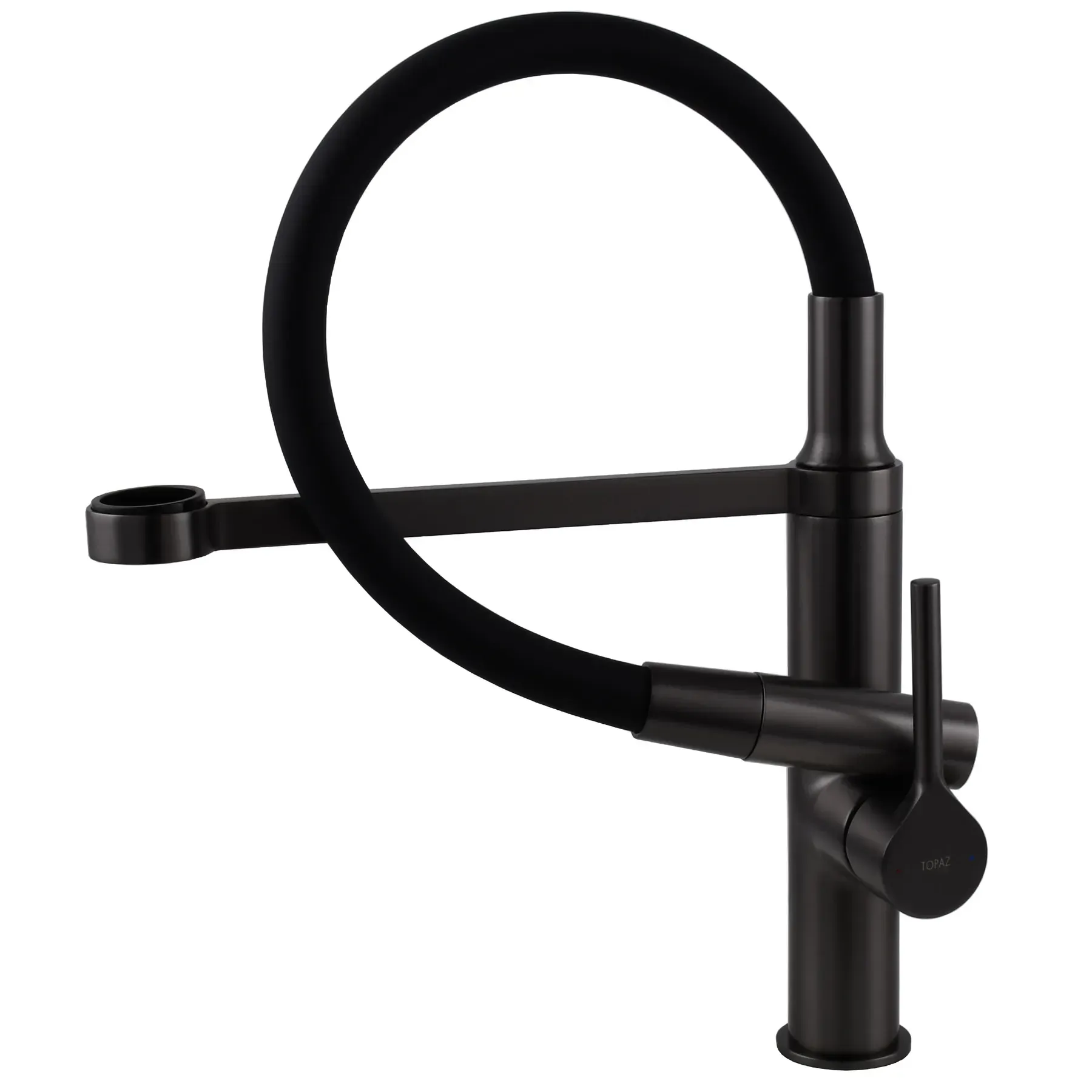 Topaz Sardinia TS 08401-H71-GP – это кухонный смеситель с современным дизайном и расширенной функциональностью, сочетающий комфорт использования, практичность и стильную эстетику для ежедневного быта. Этот смеситель предназначен для монтажа на кухонную мойку, где он обеспечивает комфортную и точную регулировку потока и температуры воды благодаря эргономичной ручке. Такая конструкция делает процесс мытья посуды, наполнения емкостей или выполнения кухонных задач легким и удобным.