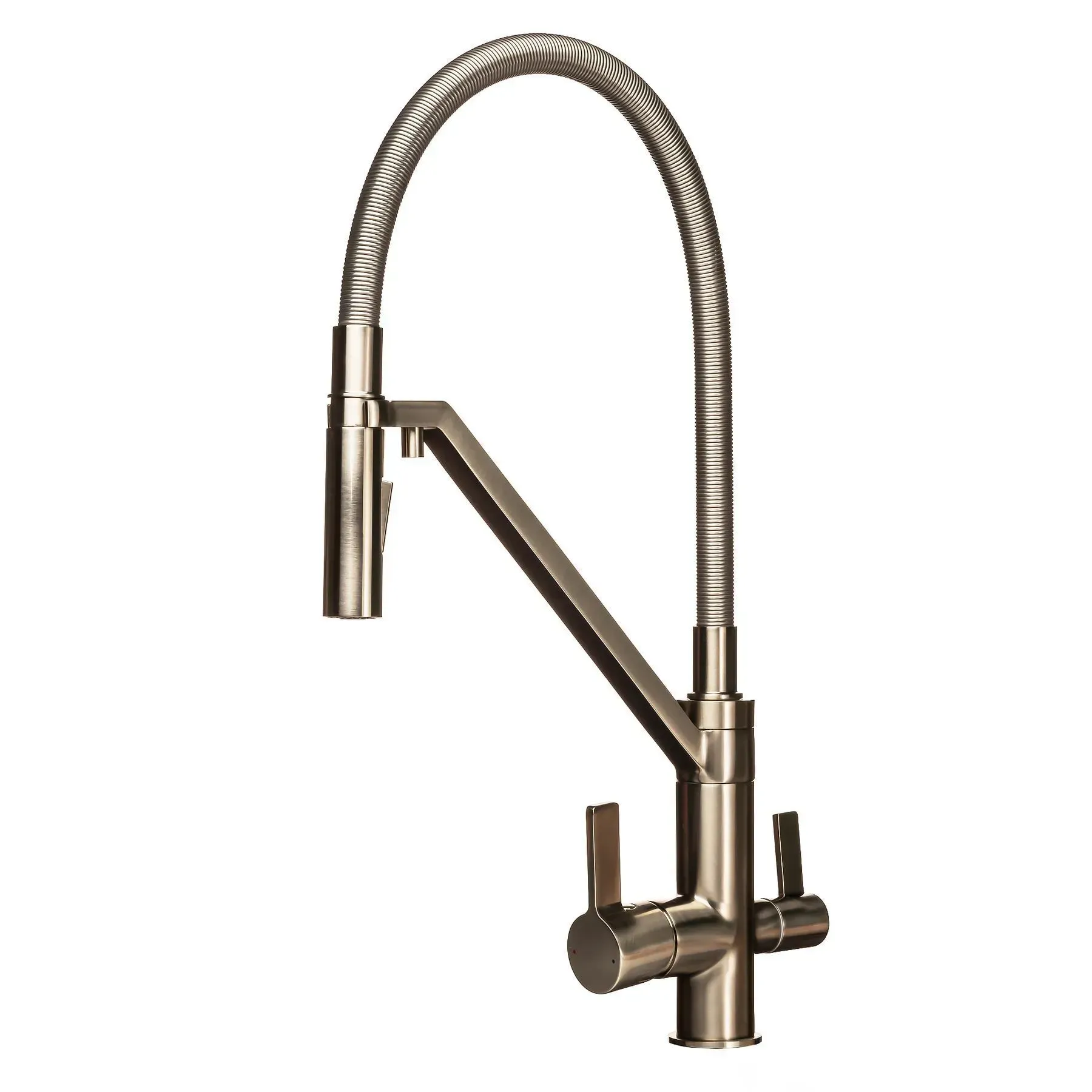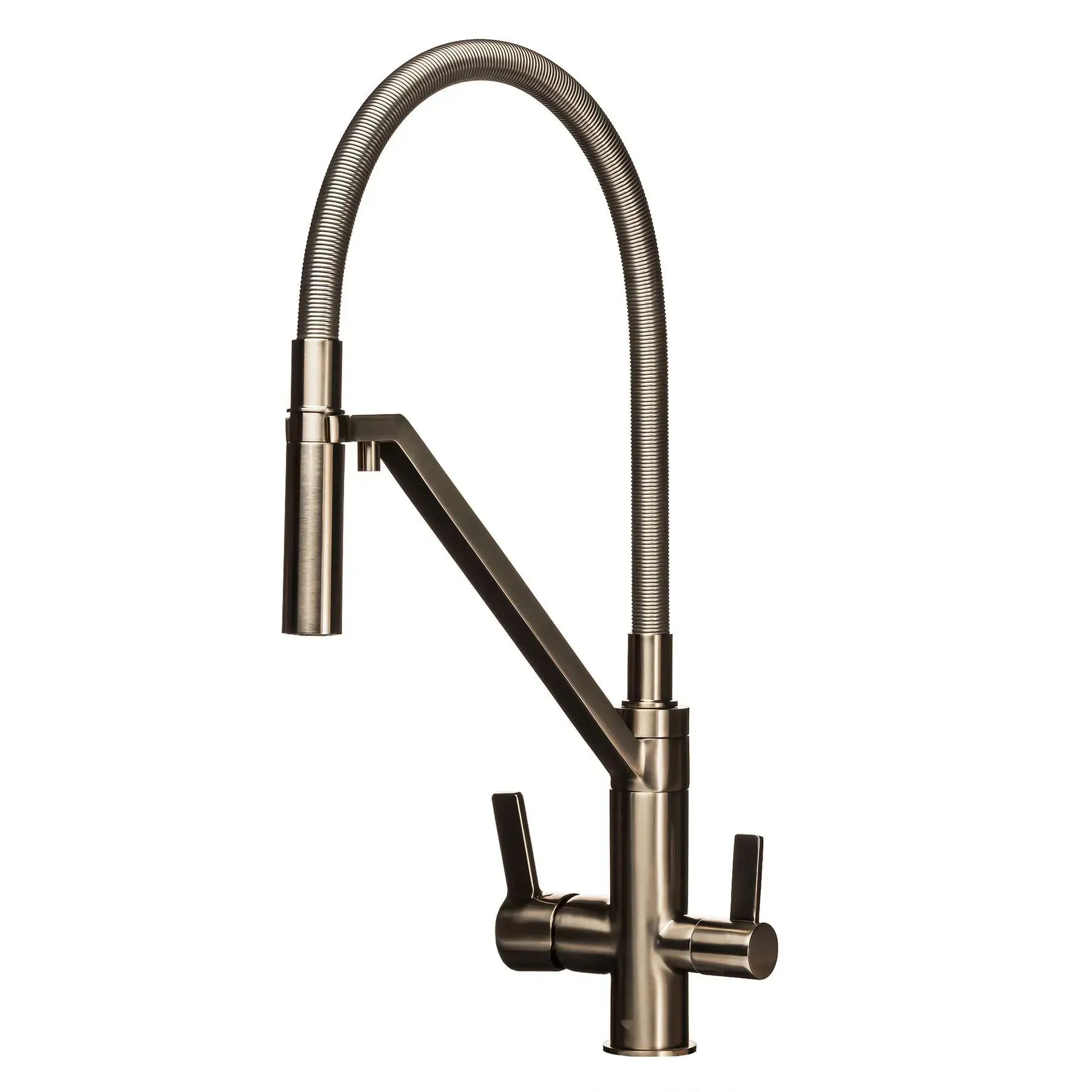 Topaz Sardinia TS 8812-H24-PVD-S – это кухонный смеситель под осмос с высококачественным PVD-покрытием, предназначенный для работы с системами фильтрации воды, в частности с осмосом. Такой смеситель позволяет отдельно подавать очищенную питьевую воду, не смешивая ее с горячей или холодной водой из основного крана, что делает его практичным и гигиеническим решением для кухни. Эта модель имеет эргономичный корпус и удобную ручку, обеспечивающую комфортную и точную регулировку потока воды. Благодаря продуманной конструкции смеситель легко справляется с повседневными кухонными задачами – от наполнения стаканов до мытья овощей.