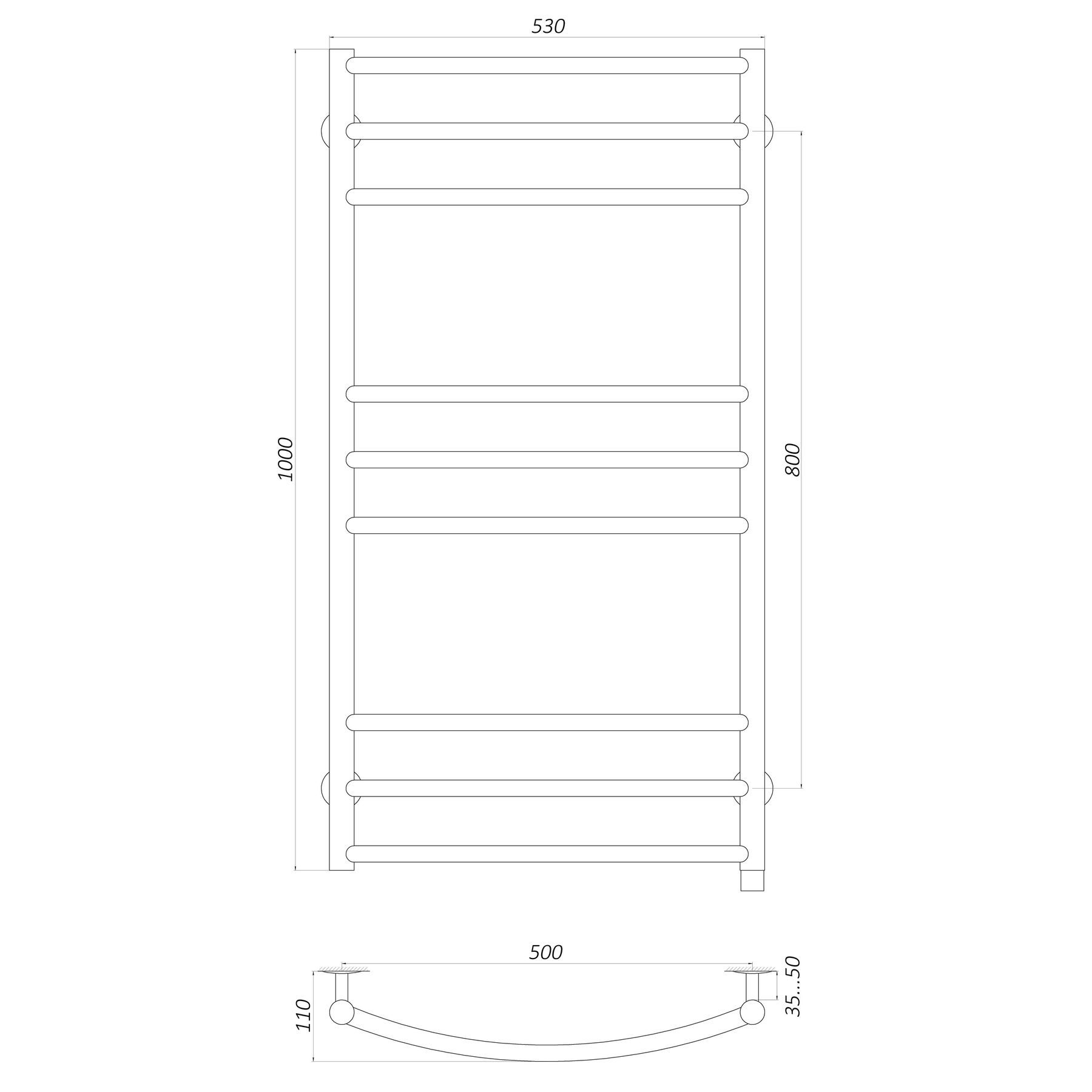 Полотенцесушитель изготовлен из нержавеющей стали.