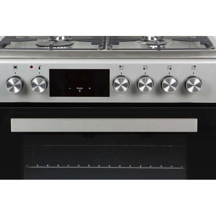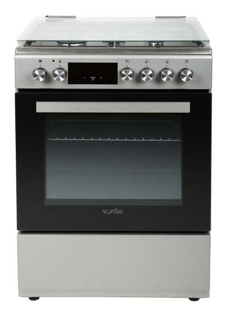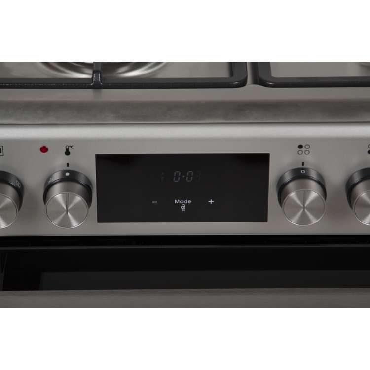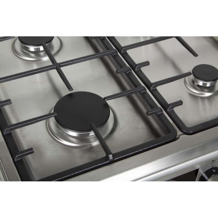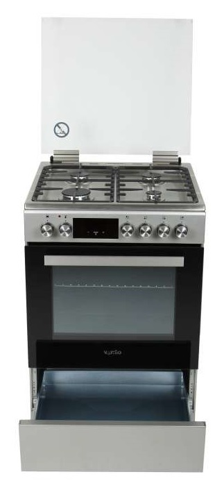 Кухонная плита газ+электро GE 6060 CS 6TC (X) – это проверенная временем классика, которая актуальна даже сегодня. Модель GE 6060 CS 6TC (X) представляет собой газовую варочную поверхность и электрический духовой шкаф, как в народе говорят 2 в 1. Он имеет удобное управление поворотными ручками и LCD дисплей с сенсорными кнопками. Газово-электрическая GE 6060 CS 6TC (X) выполнена из нержавеющей стали в соответствующем сером цвете, что делает ее универсальным решением для любой кухни. Сверху расположена газовая варочная поверхность с 4 конфорками с системами газ-контроль и электроподжиг, а также укомплектована крышкой, закрывающей стену от частиц жира. Над конфорками две решетки из чугуна. Электрический духовой шкаф имеет 5 рабочих программ и полностью те же возможности, что и у стандартных встроенных духовых шкафов. Для управления плитой на передней панели размещены поворотные ручки – 3 слева для духового шкафа с таймером и 4 справа для варочной поверхности с электроподжигом.