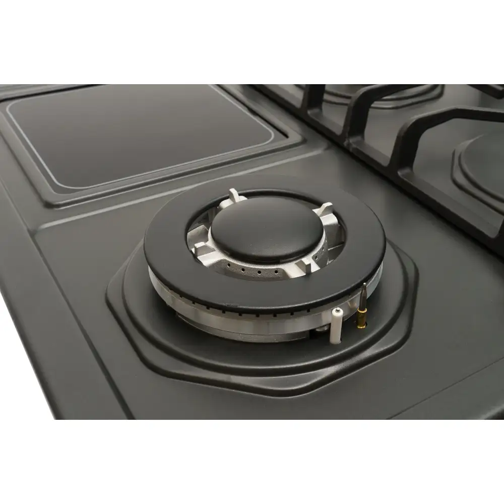 Варочная поверхность Ventolux HG631-A3MC CEST (AN) – это стильное и функциональное решение для современной кухни, сочетающей газовые и электрические конфорки в одном приборе. Поверхность выполнена в антрацитовом цвете, а корпус из эмалированной стали подчеркивает индустриальный дизайн – идеальный выбор для интерьеров в стиле минимализм или хай-тек. Эта модель оснащена тремя газовыми конфорками (включая мощную WOK-конфорку) и одной электрической Hi-Light зоной — что обеспечивает гибкость в приготовлении различных типов блюд.