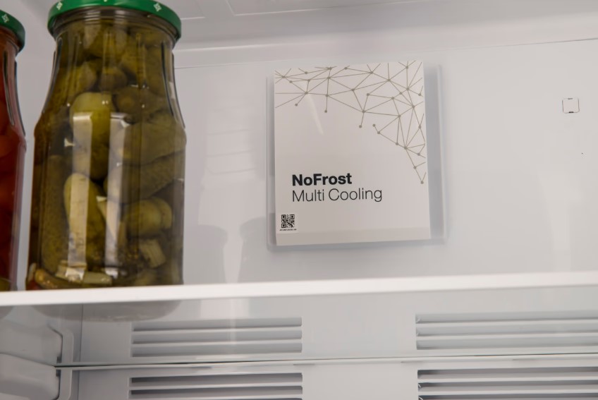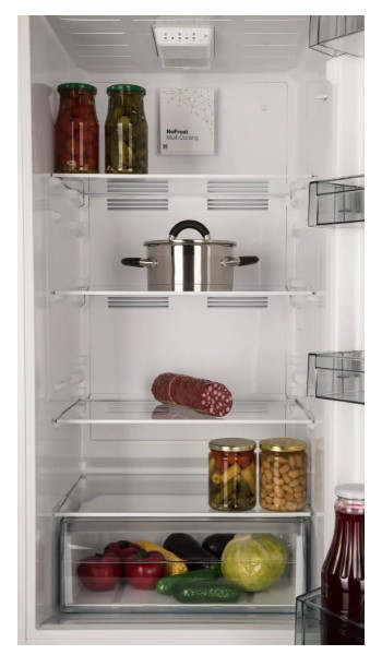 Благодаря No-frost в морозильной и холодильной камерах не появляется лед, а замороженные продукты не покрываются слоем инея. Замораживание осуществляется с помощью циркуляции охлажденного воздуха, а образующаяся при этом влага отводится из морозильной или холодильной камеры.