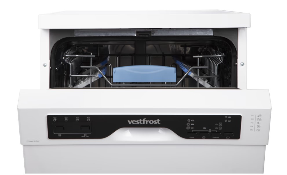 Vestfrost FDW4510W – это компактная отдельностоящая посудомоечная машина, предназначенная для небольшой семьи или кухонь с ограниченным пространством. Она легко справляется с задачами ежедневной мойки, экономно используя ресурсы и обеспечивая качество очистки.