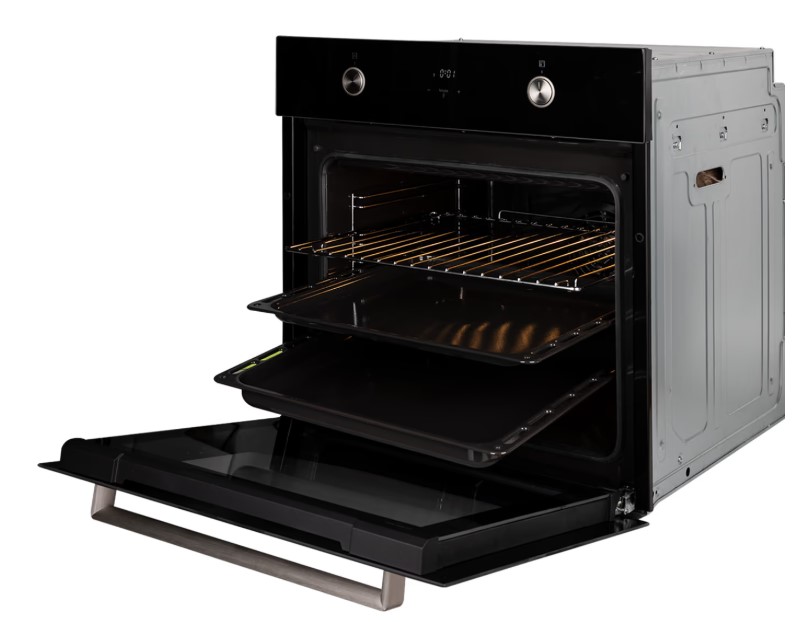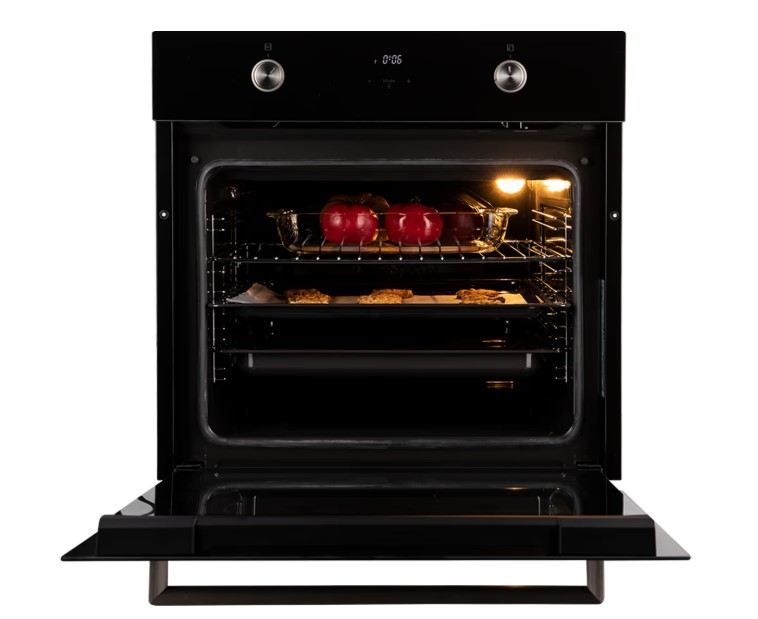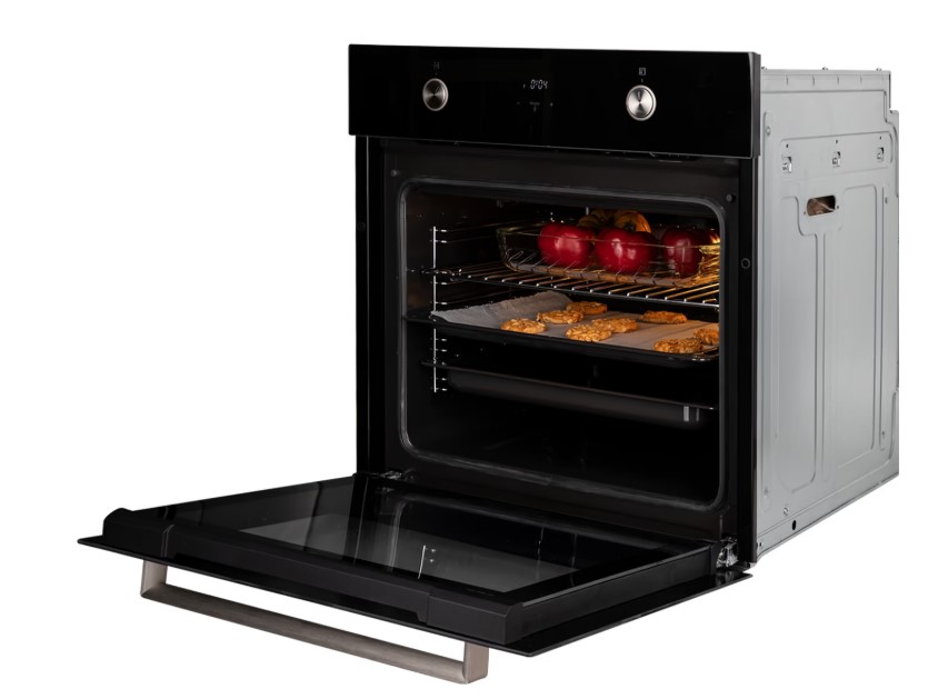 Модель OBG 869 TDT от Vestfrost – стильный встроенный электрический духовой шкаф в черном стекле, сочетающий современный вид с практичными функциями для кухни. Объем духовки составляет 69 л, что позволяет комфортно готовить большие блюда или несколько уровней одновременно. Шкаф оснащен 8 режимами работы, а также функция размораживания. Телескопические направляющие позволяют безопасно и удобно вытаскивать противень даже с большим весом, а легкоочищаемая эмаль внутренней камеры обеспечивает комфортный уход. Дверца выполнена с двумя слоями стекла, корпус имеет глубину 57,5 см, а класс энергопотребления — А, что говорит о достаточно эффективной работе.