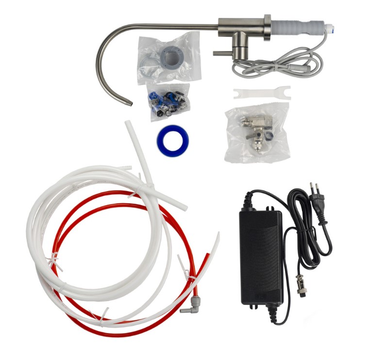 | Комплектация | фильтры, кран, блок питания, соединительные трубки, фитинг-тройник |