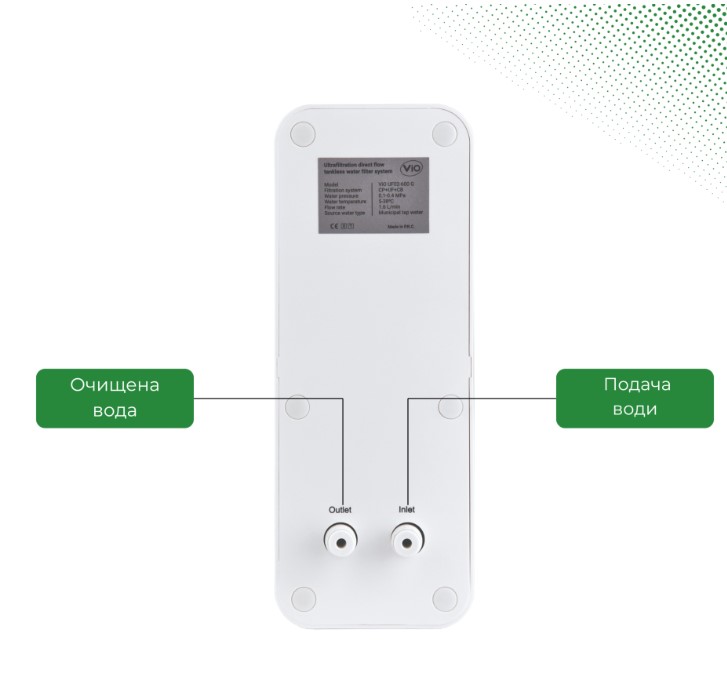 ViO UF02-600 – ваш идеальный выбор для чистой и свежей питьевой воды без лишних затрат. Ультрафильтрация позволяет отказаться от бутылированной воды: пропускная способность 1,6 л/мин (теоретически до 2300 л/сут) обеспечивает качественную воду прямо из крана. Ультрафильтрационная мембрана 0,01 мкм задерживает взвешенные частицы, коллоиды, бактерии и цисты, сохраняя природные минералы (Ca, Mg). Угольный этап снижает хлор и устраняет нежелательные сладости и запахи. UF не предназначен для уменьшения TDS/фторидов/ионов тяжелых металлов и не гарантирует полного удаления вирусов; для этого требуется обратный осмос (RO).