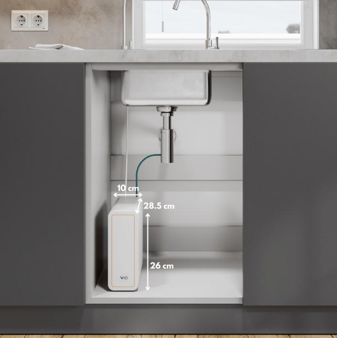 Корпус легко размещается в шкафу под раковиной, подключение к дренажу не нужно – удобно в эксплуатации и экономно в использовании воды. В комплекте все нужно для быстрого монтажа. Замена картриджей занимает считанные секунды благодаря механизму Push Twist без вызова мастера. При необходимости делается отверстие под кран для питьевой воды – и система готова к работе. Работает без электричества и дренажной воды, уменьшает расходы на бутилированную воду и количество пластика в быту.