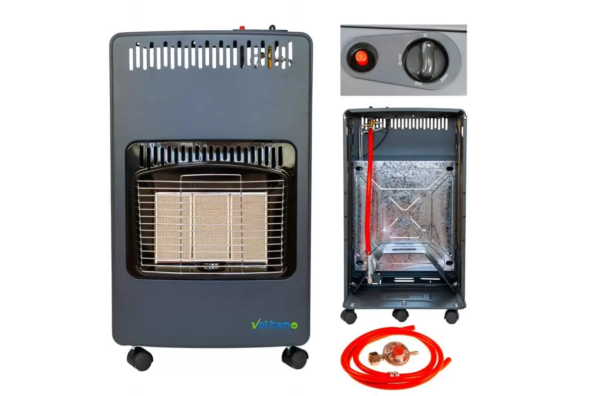 Volteno 4200 Вт – газовый обогреватель мощностью 4200 Вт, предназначенный для эффективного обогрева помещений и открытых пространств, где нужно создать комфортную температуру быстро и без лишних сложностей. Этот обогреватель работает на сжиженном газе пропан-бутан (LPG) от стандартного баллона (баллон в комплект не входит), а в комплектацию включен шланг и редуктор давления, позволяющий сразу готовить устройство к работе. Обогреватель оборудован несколькими режимами мощности, позволяющими регулировать интенсивность обогрева в зависимости от условий и потребностей пользователя.