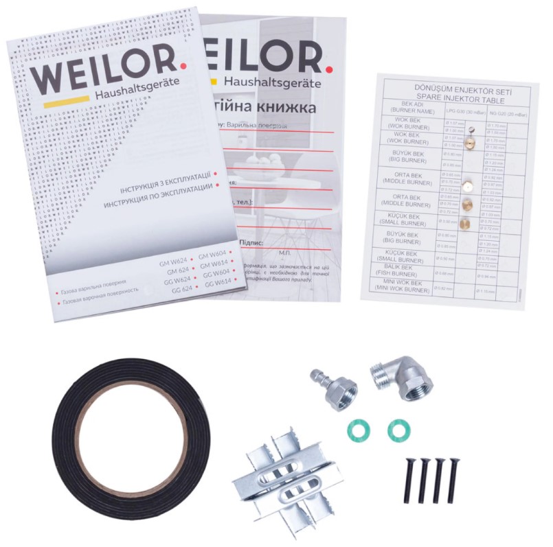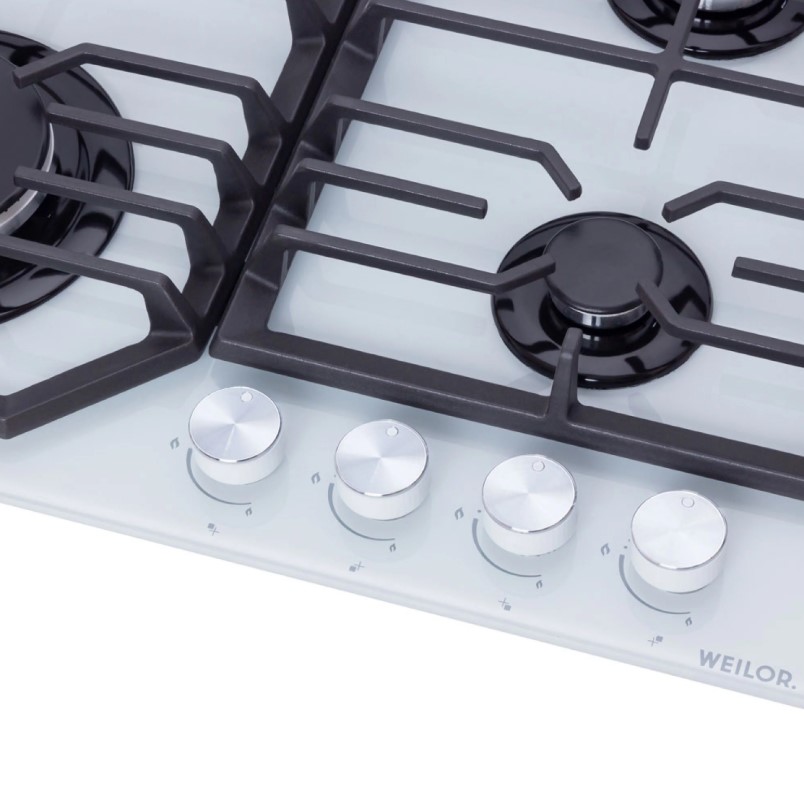 Геометрия решеток варочной поверхности, исполненных из высококачественного чугуна, идеально дополнит интерьер Вашего кухонного помещения. Регуляторы управления варочной поверхности изготовлены из термостойкого пластика, устойчивого к выцветанию, с использованием декоративных элементов, повторяющих плавные линии решеток прибора. Автоматический вид электроподжига, срабатывающий одновременно с подачей газа, в регуляторах управления поверхностью наиболее комфортен и безопасен. Варочные поверхности Weilor оснащены системой «газ-контроль», которая автоматически блокирует подачу горючего при отсутствии пламени и обеспечивает максимальную безопасность пользования прибором.
