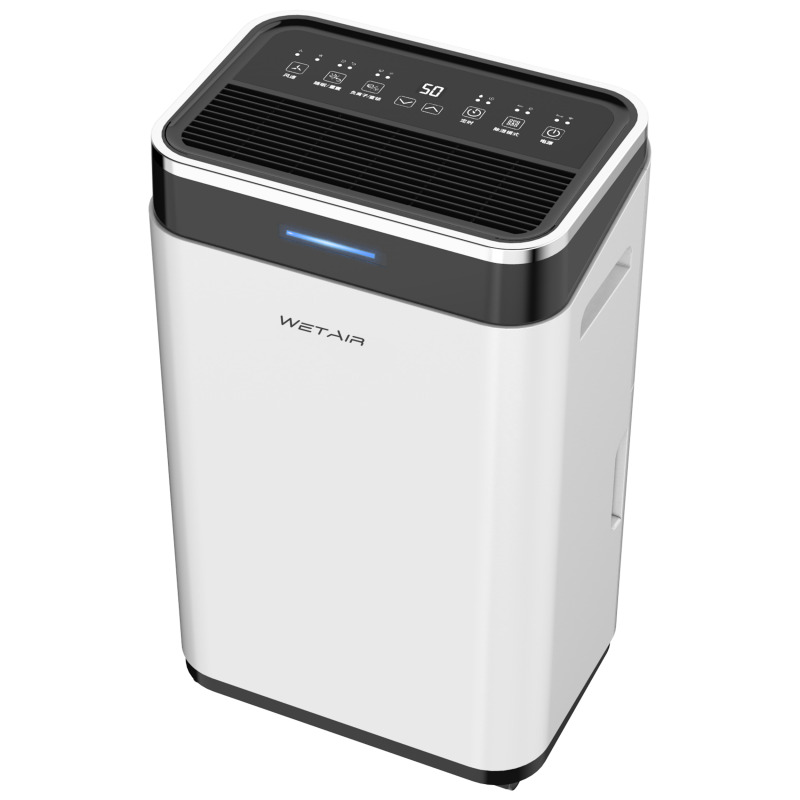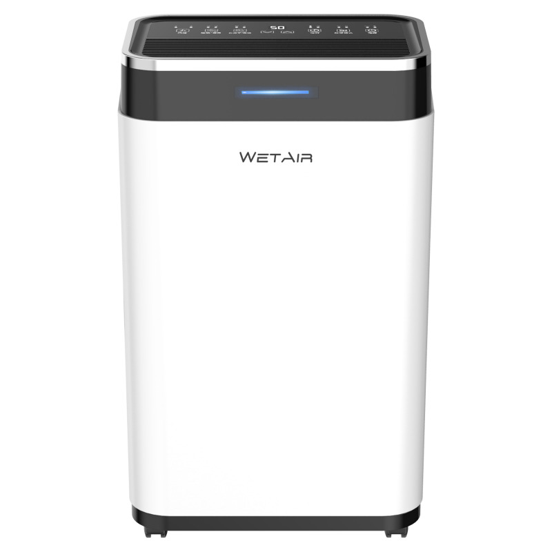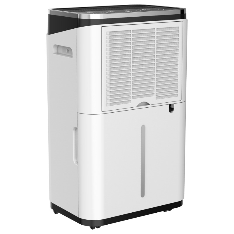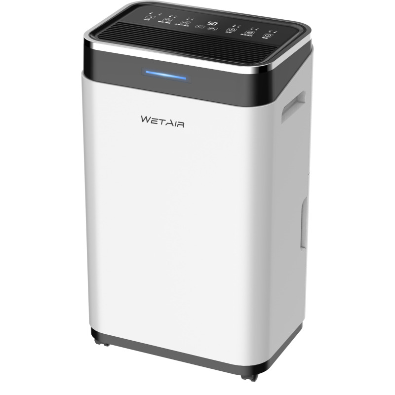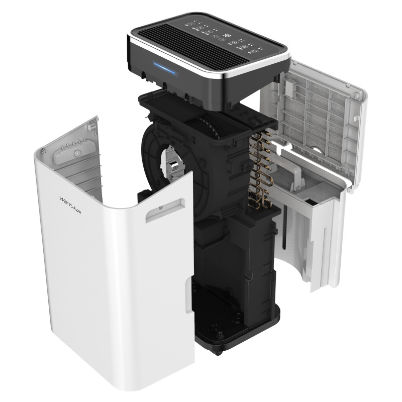 Осушитель воздуха - это прибор, который поможет Вам понизить влажность в помещении, удалить сырость, а так же поможет ускорить сушку белья. Рекомендуемая влажность в помещении должна быть 50-55 процентов. Бывают случаи, когда влажность гораздо выше и необходимо ее понизить. Вентилятор забирает воздух из помещения с избыточной влажностью и подает на испаритель (радиатор с низкой температурой). При попадании на данный испаритель, воздух сильно охлаждается, а избыточная влага из воздуха конденсируется и стекает в резервуар для воды. После, уже осушенный воздух поступает на конденсатор (радиатор с высокой температурой). Нагретый и осушенный воздух подается в помещение.