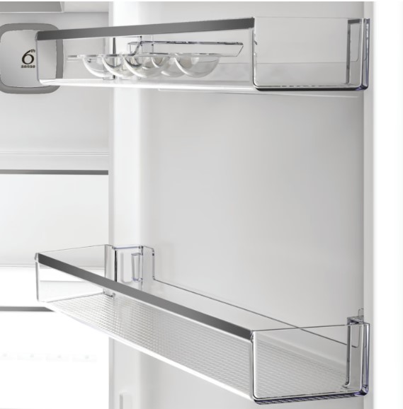 Модель предлагает систему NoFrost, которая автоматически предотвращает накопление инея в морозильнике и значительно облегчает уход. В конструкции предусмотрена система автоматического оттаивания в холодильном отделении, так что уход минимален. Уровень шума довольно низок, что делает его почти бесшумным в работе. Для удобства – регулируемые полочки, подсветка внутри, двери с возможностью перевешивания, а также сигнал тревоги открытой двери.