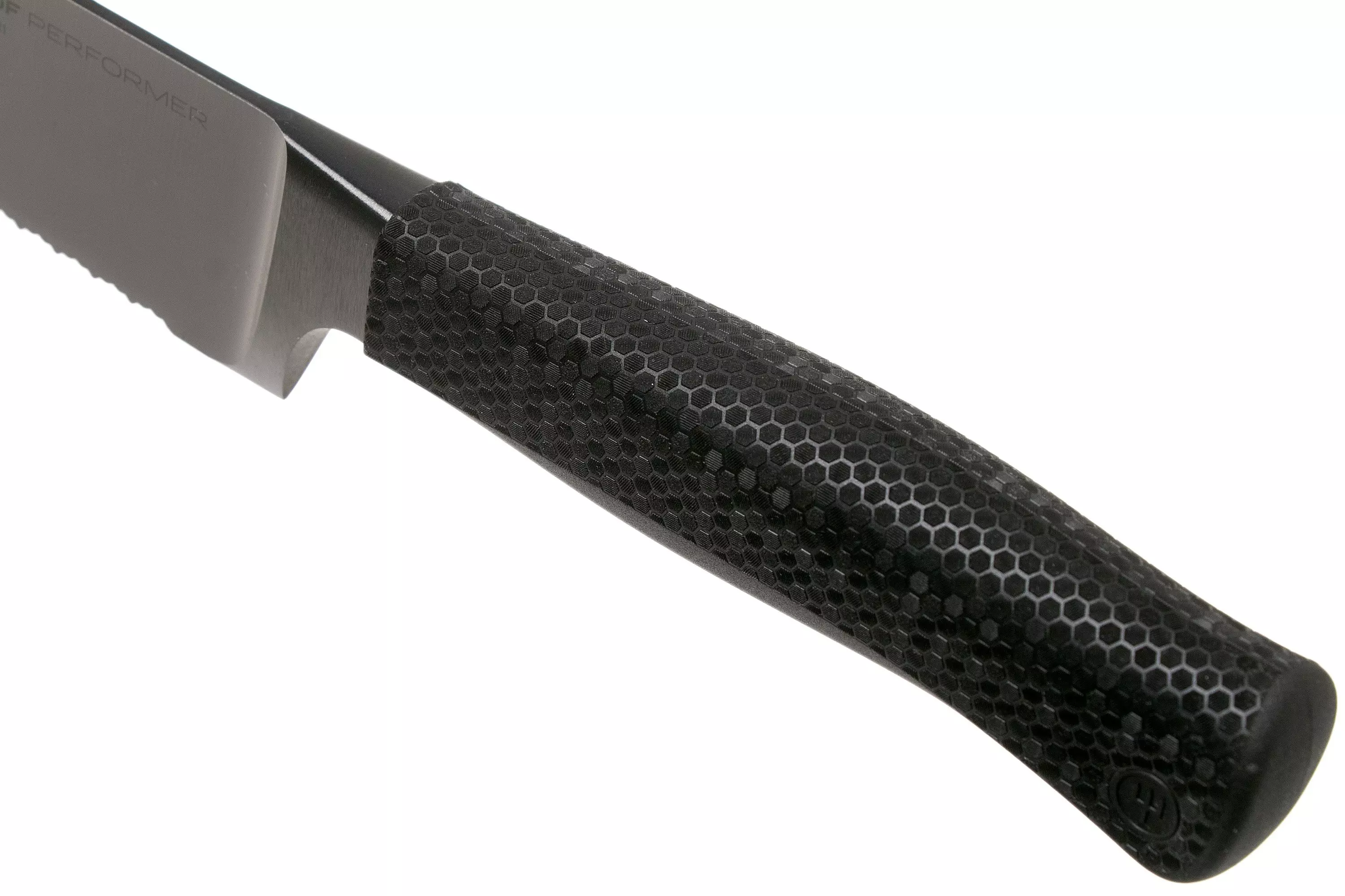 Нож для хлеба Wüsthof Performer — это нож для хлеба, обеспечивающий максимальную производительность без усилий. Зубчатое лезвие длиной 23 см позволяет нарезать все виды хлеба: от твердой до мягкой корочки, от булочек до багетов. Но вы можете использовать нож не только для хлеба. Он также отлично подходит для тортов и пирогов. А как насчет твердых овощей и фруктов, таких как дыня, тыква и сельдерей! Нож с зубцами гораздо более универсален, чем вы думаете.