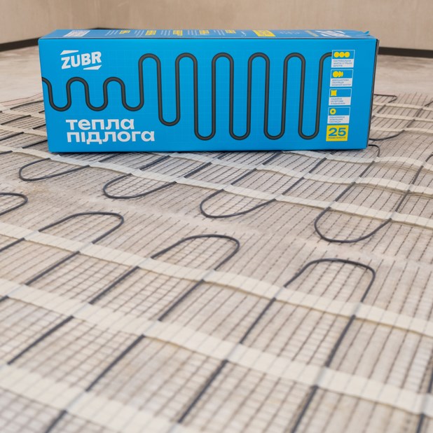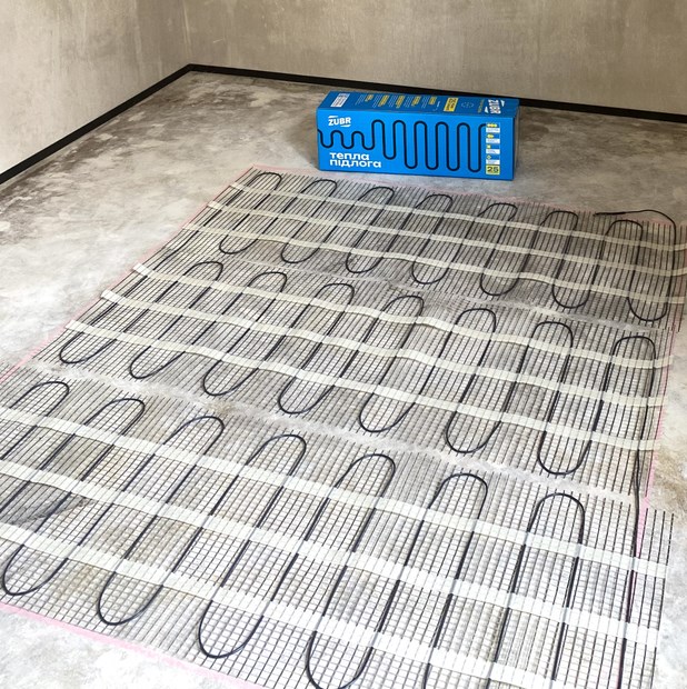 Нагревательный мат ZUBR состоит из нагревательного кабеля, закрепленного скотчем высокой прочности на самоклеющейся армирующей сетке из стекловолокна. За счет фиксации нагревательного кабеля на сетке исключается необходимость подбирать шаг укладки, что снижает возможность его повреждения при монтаже. Расстояние между витками нагревательного кабеля на армирующей сетке мата оптимально для равномерного комфортного нагрева и составляет 9 см.