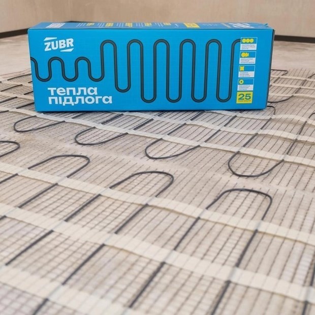 Нагревательный мат ZUBR состоит из нагревательного кабеля, закрепленного скотчем высокой прочности на самоклеющейся армирующей сетке из стекловолокна. За счет фиксации нагревательного кабеля на сетке исключается необходимость подбирать шаг укладки, что снижает возможность его повреждения при монтаже. Расстояние между витками нагревательного кабеля на армирующей сетке мата оптимально для равномерного комфортного нагрева и составляет 9 см.